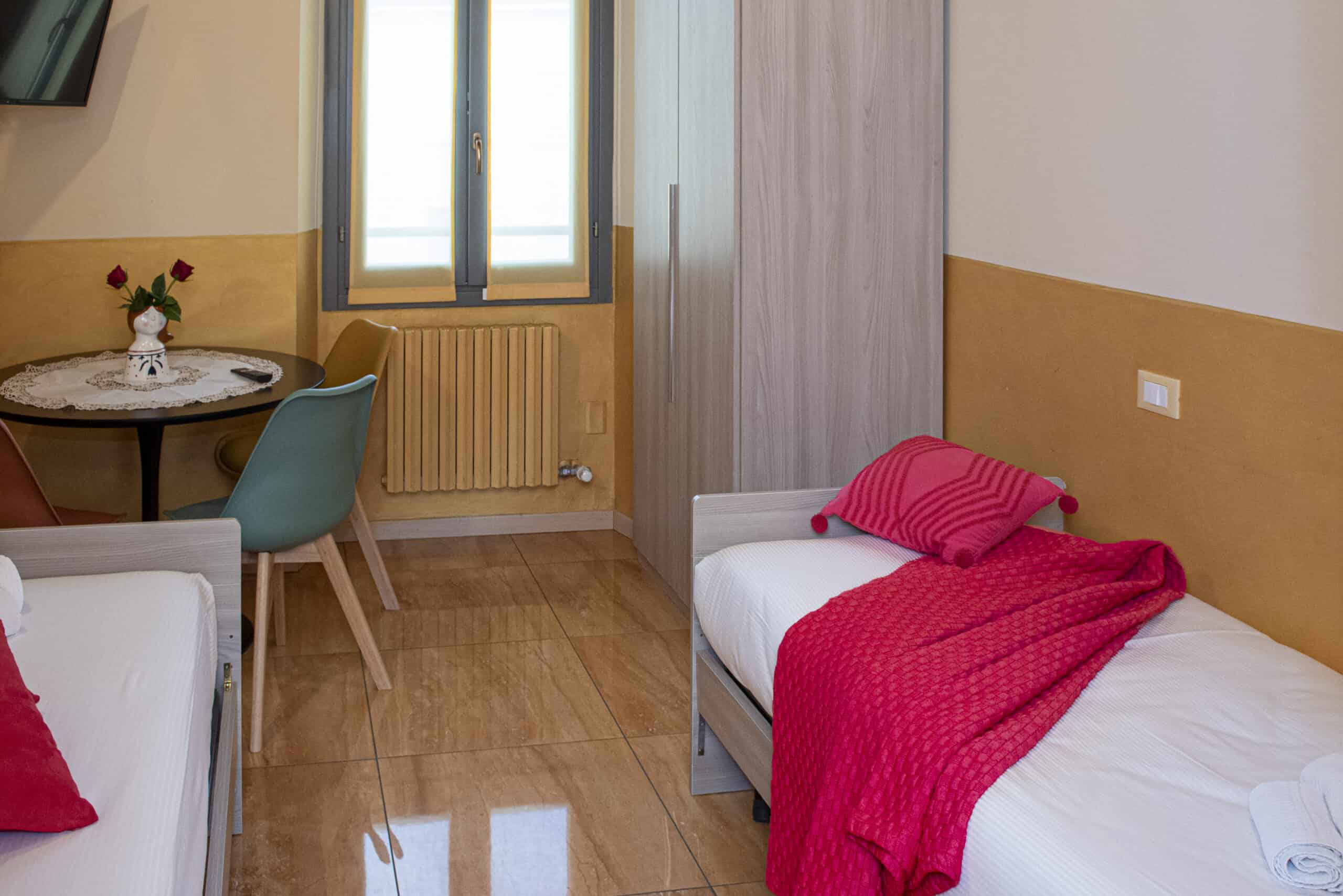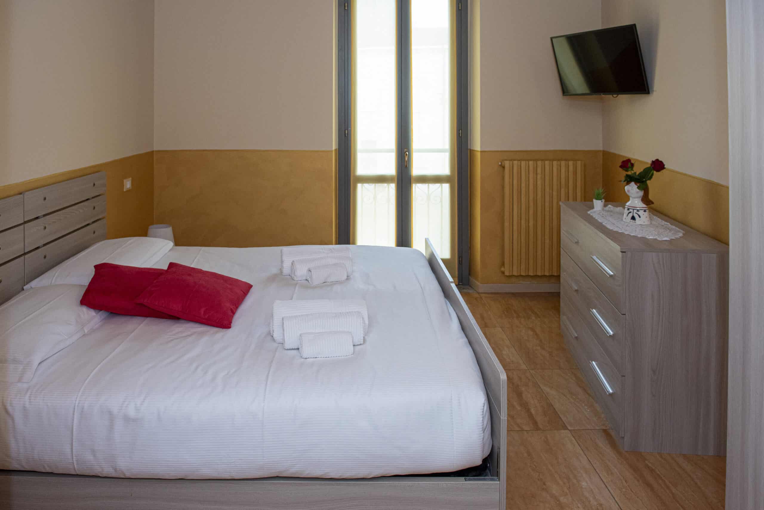 L’appartamento dispone di ingresso indipendente e offre una soluzione abitativa confortevole e funzionale, ideale per soggiorni brevi. Si affaccia su una piazza, di fronte alla chiesa. È composto da una cucina attrezzata, due camere da letto e un bagno, con spazi pensati per garantire praticità e relax. In entrambe le camere è presente una TV a schermo piatto. In base alle esigenze degli ospiti, è possibile predisporre 4 letti singoli, oppure un letto matrimoniale in una camera e due letti singoli nell’altra. Leggi di più[...]