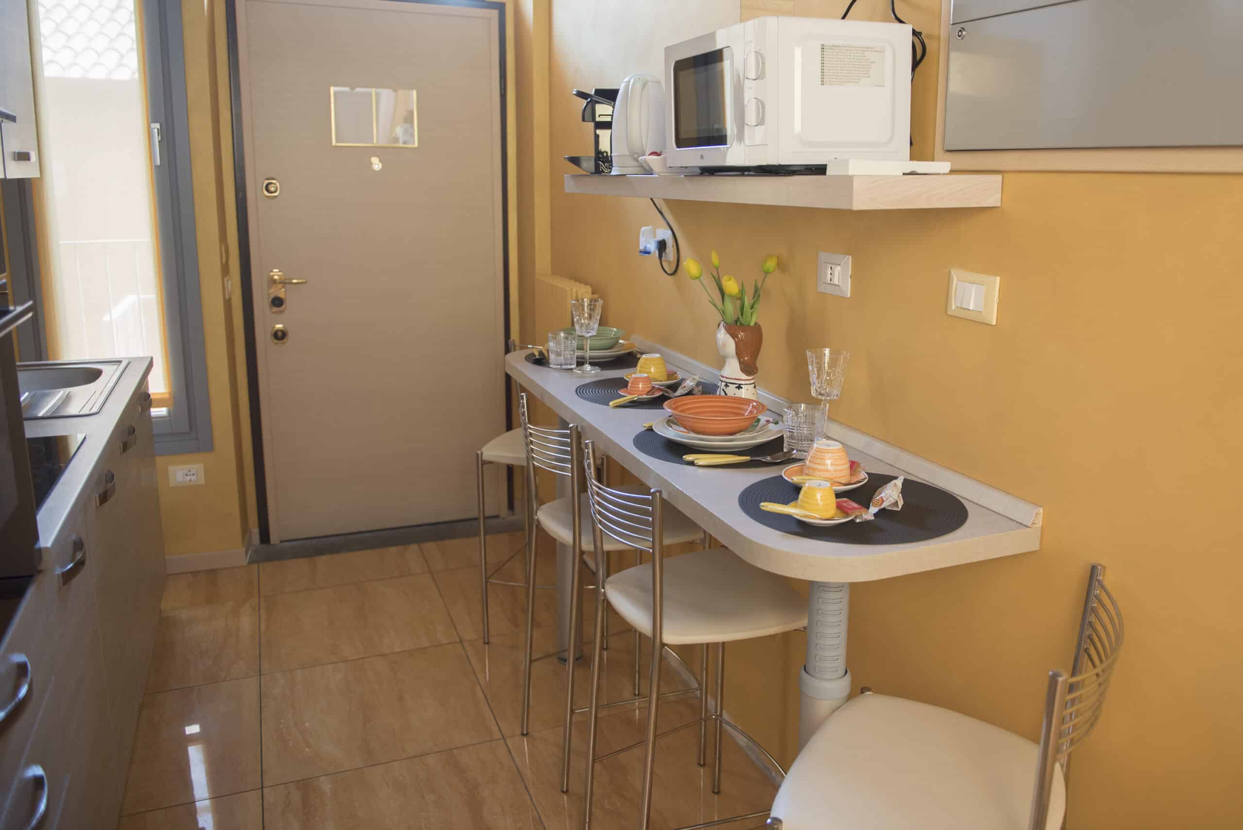 L’alloggio è dotato di tutti i principali comfort: cucina completa, bagno con lavatrice, biancheria inclusa e aria condizionata, per un soggiorno senza pensieri.