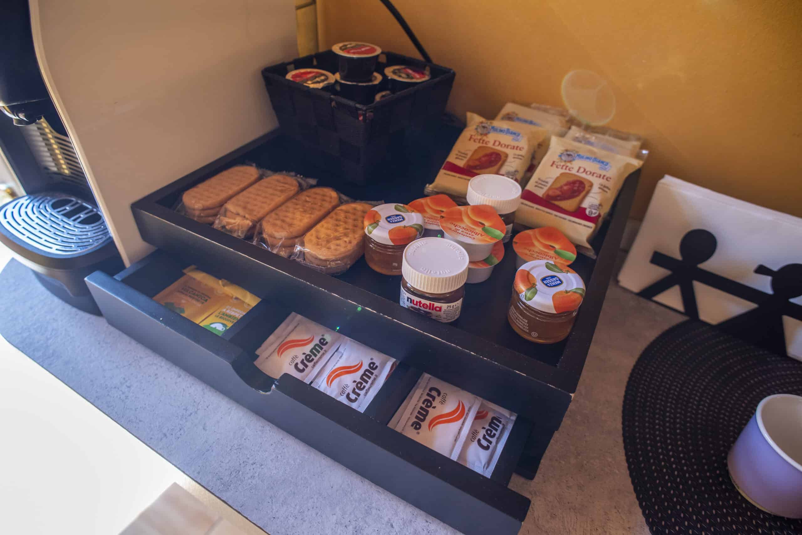 Sotto la struttura è presente una pasticceria con produzione propria, dove gli ospiti possono gustare un’ottima colazione con prodotti freschi e genuini.