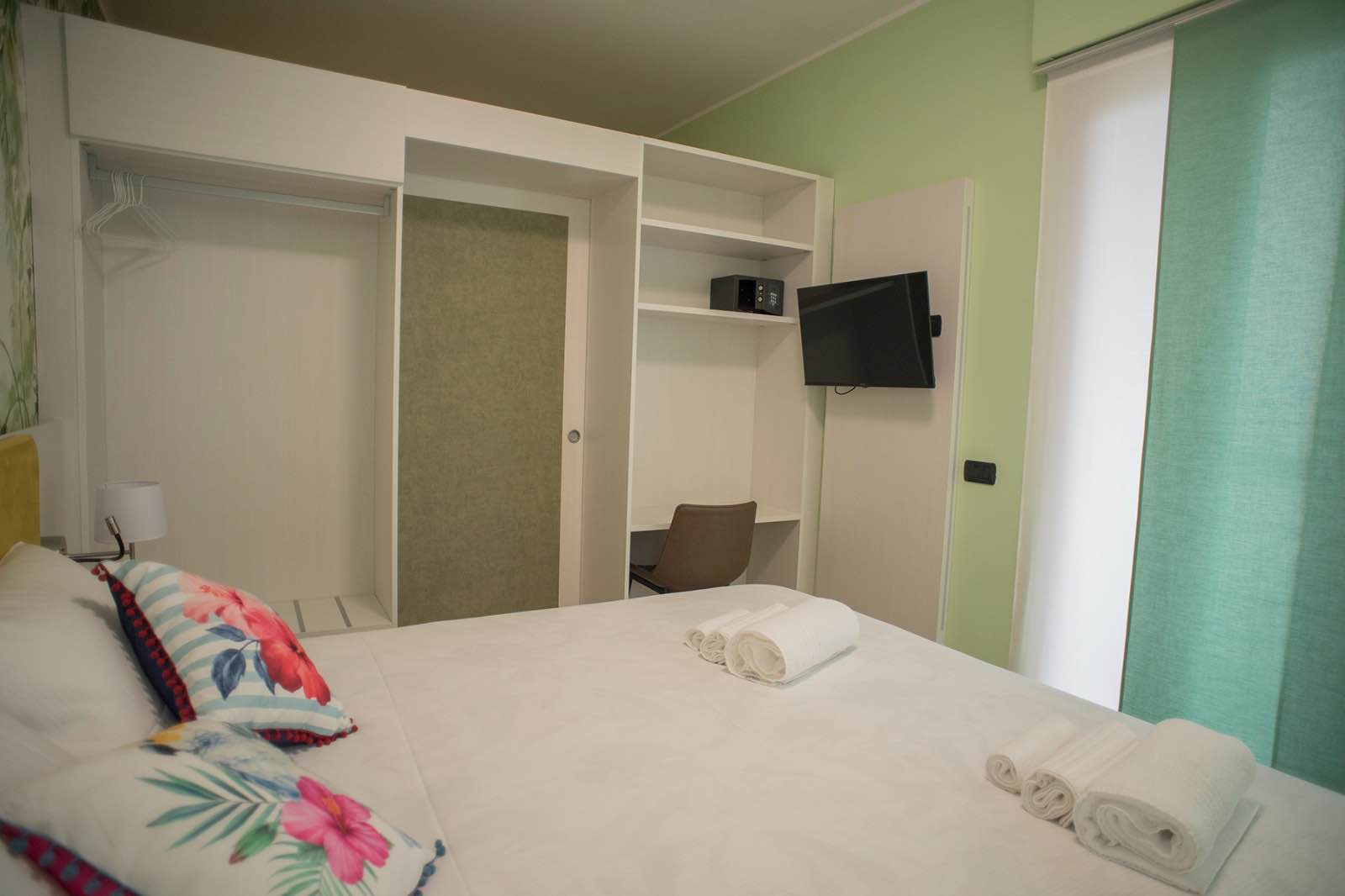 La disposizione dei letti è flessibile: è possibile avere 2 letti matrimoniali oppure 4 letti singoli, in base alle esigenze degli ospiti.